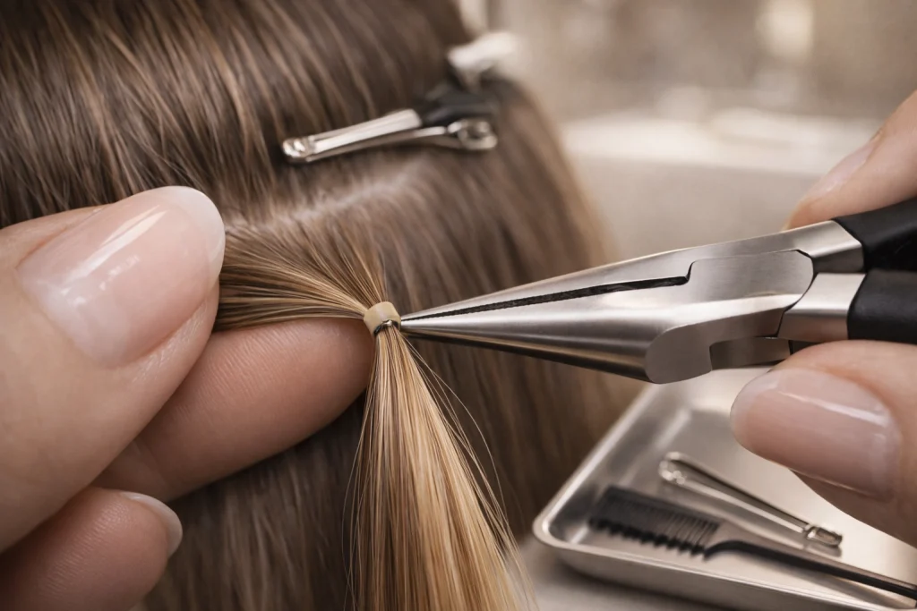 One of the most significant benefits of I-Tips is the ability to "move them up." As your natural hair grows, our stylists can simply open the bead and move the extension back up toward the scalp, making them a sustainable and long-term investment in your beauty routine.